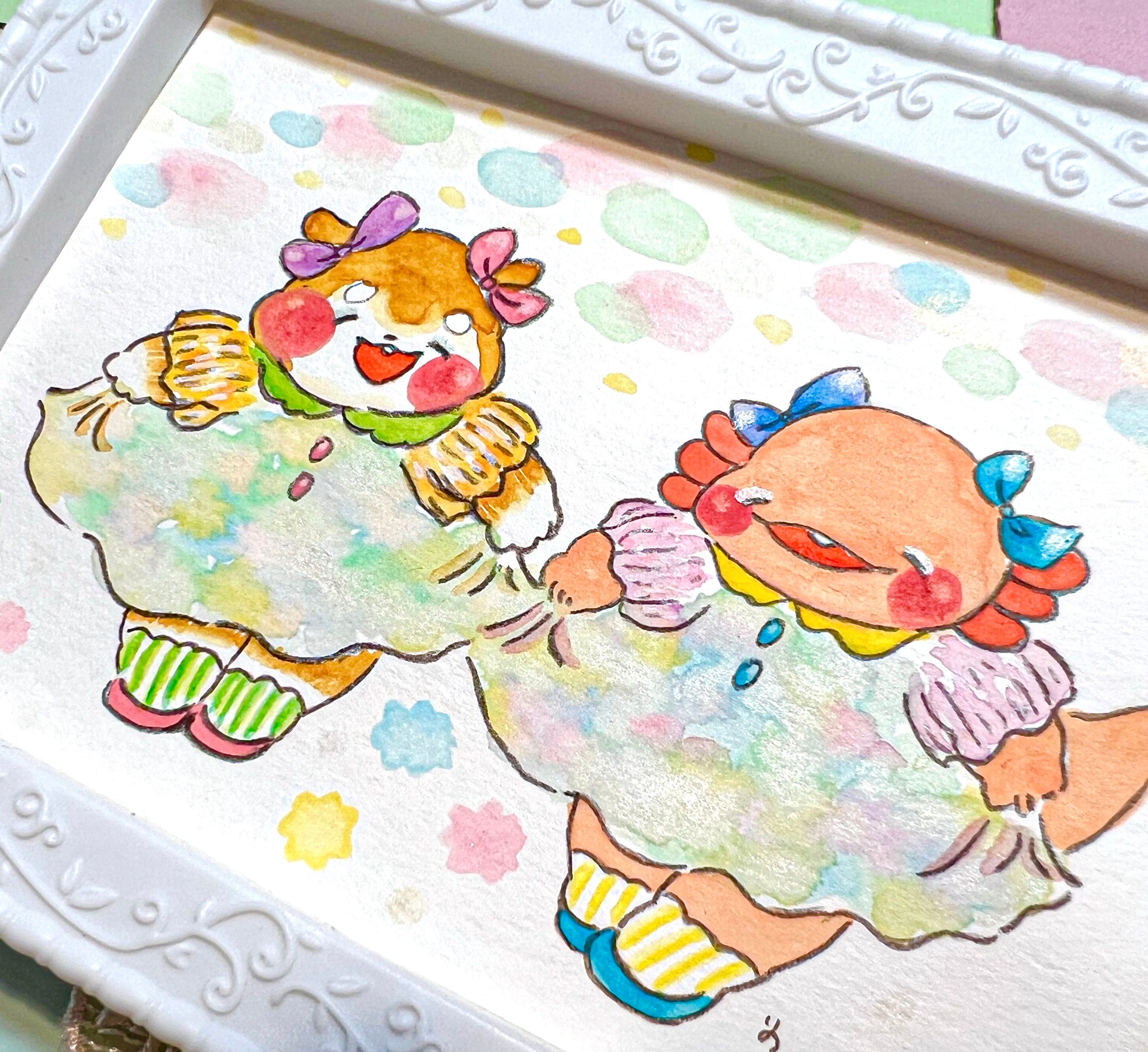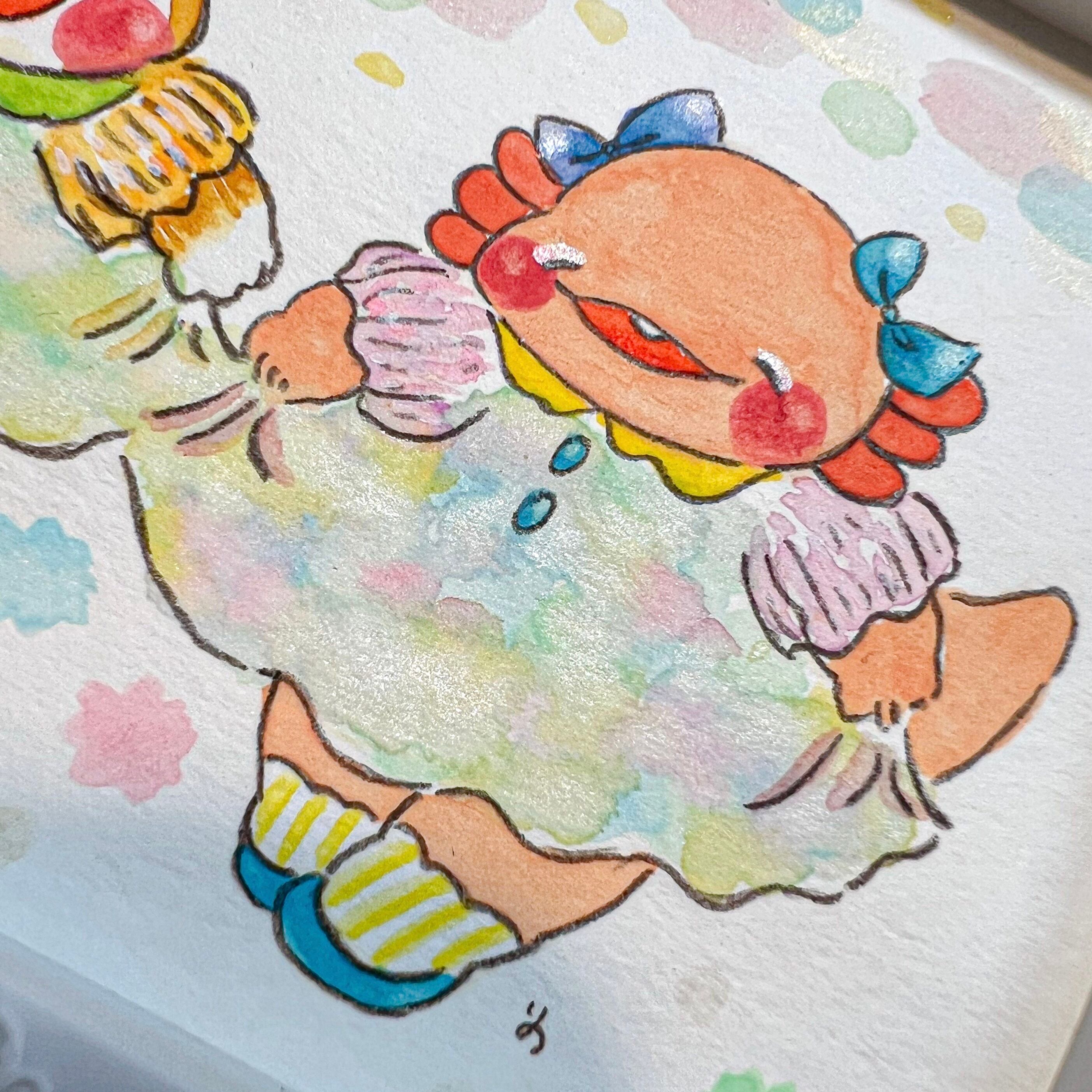 使用画材 : 水彩絵の具、色鉛筆、顔彩
